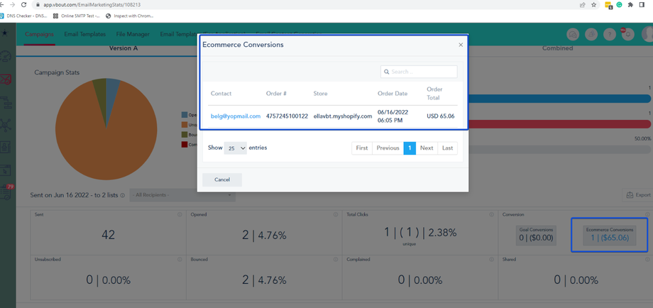 Also, you can see the e-commerce conversion for your email campaign, in the Email Campaigns widget on your dashboard