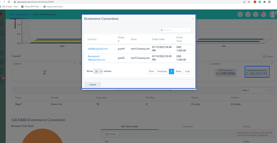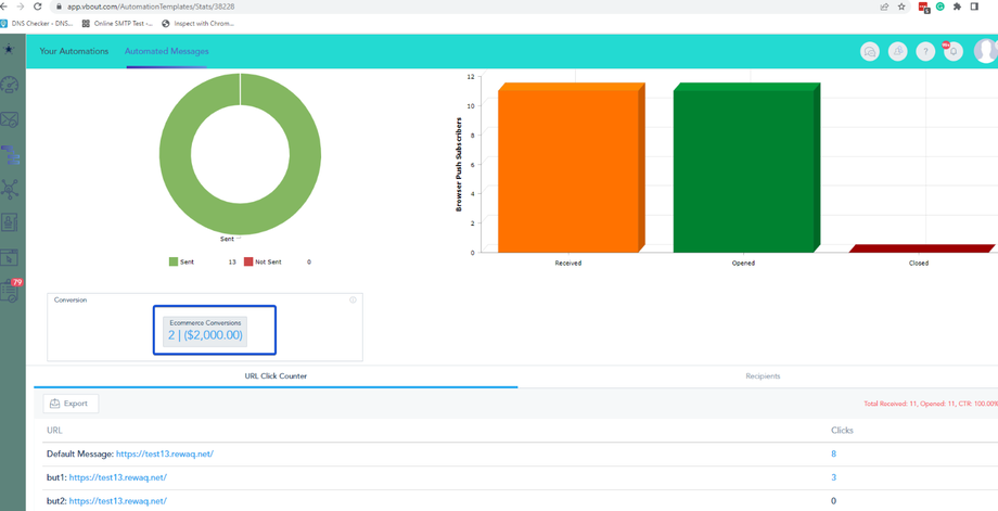 The platform automatically tracks conversions for any campaigns and automated messages (Email, SMS, and Browser Push) sent to your contacts. This allows you to analyze the performance of your marketing channels across your account.