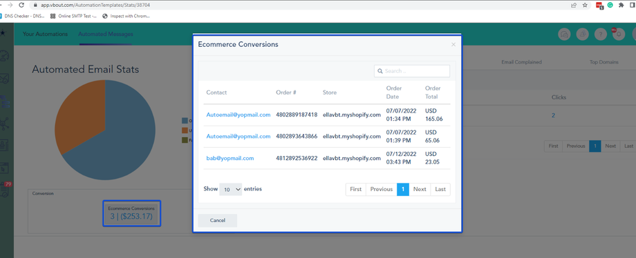 You can check the conversion in the Campaign, Automation and Automated Message Analytics. The conversion will reflect the number of orders and the total amount collected.