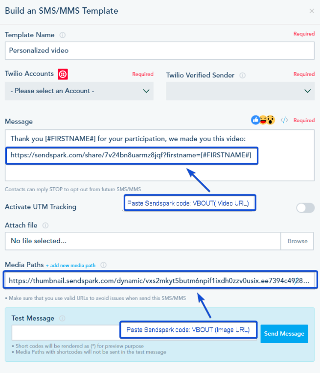 In the Media path, paste the code you have copied from Sendspark “VBOUT (image URL)” button. This will be the video thumbnail.