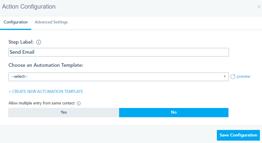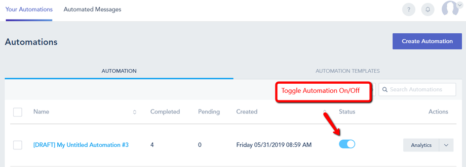 You can build an automation workflow by clicking on the Automation option from the left menu bar. Automation can be one or a collection of workflows that you can create to automatically target contacts, using a simple drag and drop workflow designer.