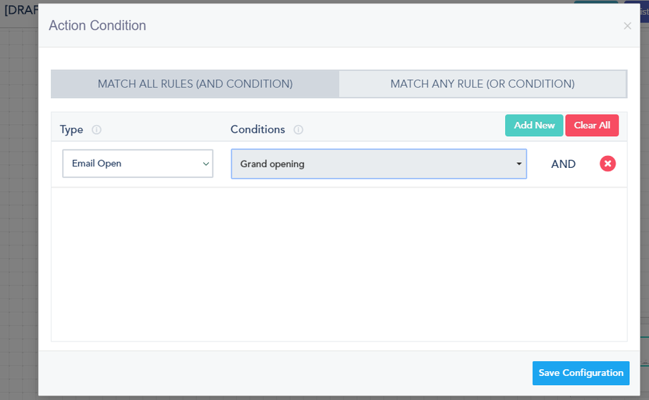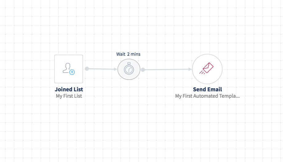 After finishing setting up the Trigger, you can start adding your sequence of actions. Ex: add a confirmation email to be sent out to users who sign up to your specified list. You have to click on the Send Email under Actions and drag it to the right of your Trigger. Double click on the Action to select the proper automation message or create a new one.