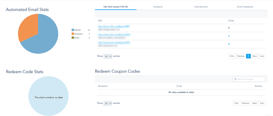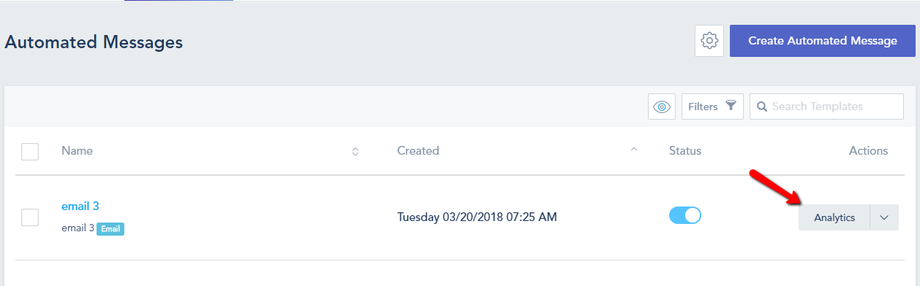 To preview the analytics for a specific email template, click on Analytics from the templates view page. You will find details on open rate, clicks, bounces, spam and more.