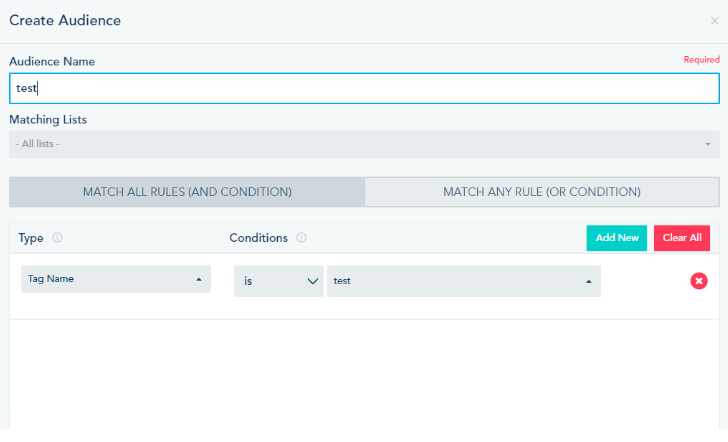 Tags and Audiences: You can create smart segments of your lists based on tags by choosing General Filter, “By Tag Name” then selecting the relevant tag from the drop-down:
