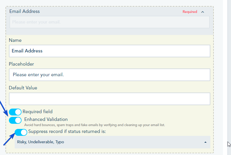 You have the option to enable enhanced validation when the contact signup to your form.