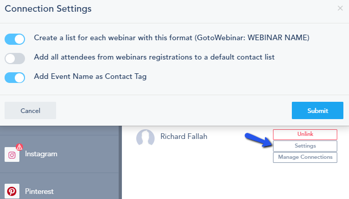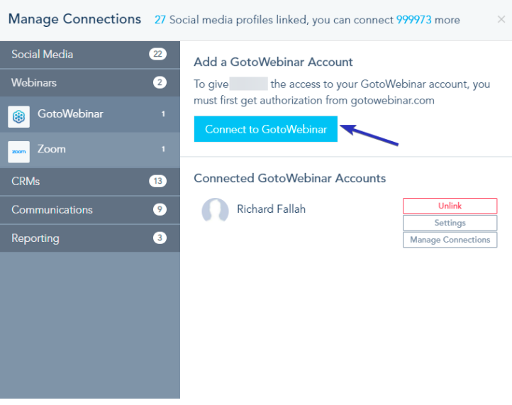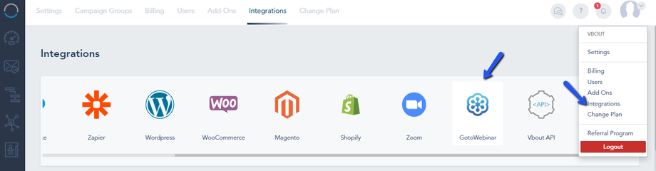 Once you successfully connect your GotoWebinar account, you will see it under the Integrations page: