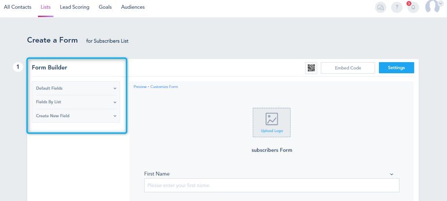 Each Form is connected to a List on the platform. To start creating your Form, you need to create a List first.