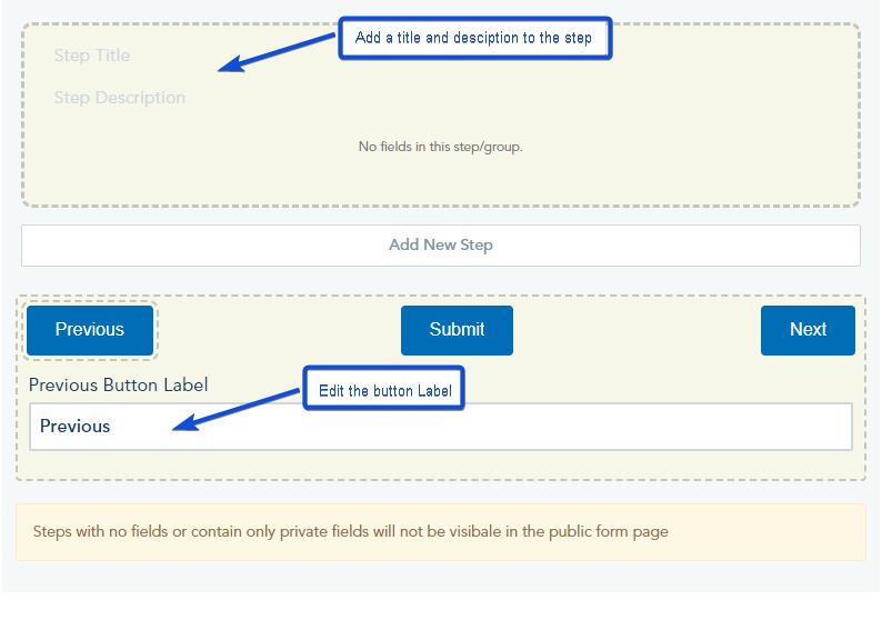 Once created, you will have the option to add a name and description for each step. Also, you have the option to change the button’s label.