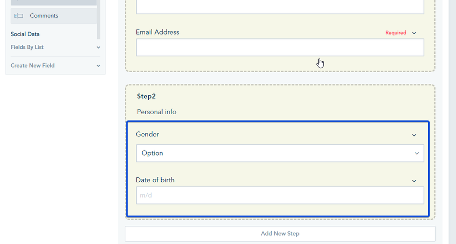 In the Form builder, click on Add New Step to create an additional step in your form.