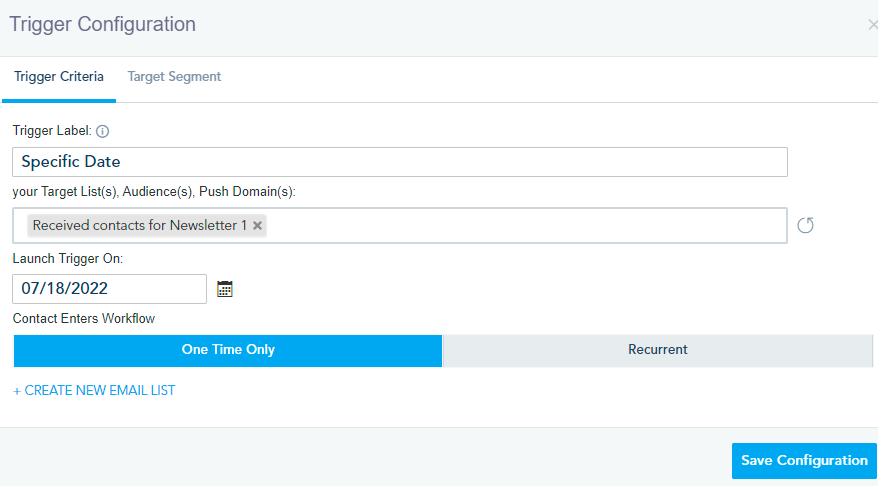In the trigger configuration, choose the audience you want to add to the list and a date to launch the automation.