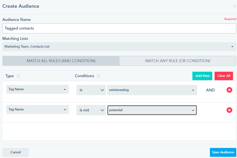 Once done, click on Save Audience.