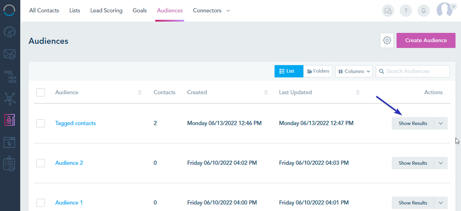 The Audience will start processing. To view the Audience result, click on the Show Results option of your audience.