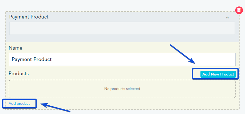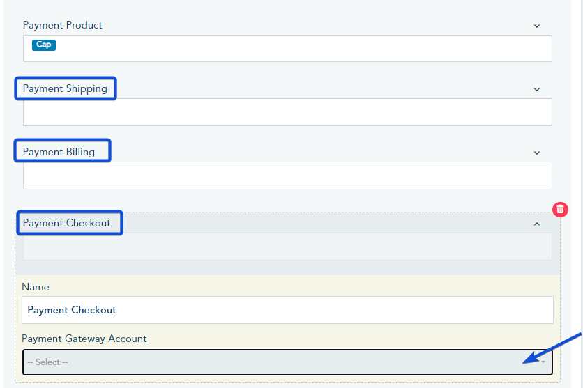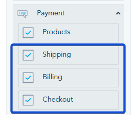 Once you’ve added the “Payment Product” field, you will be able to add the 3 other fields: Payment Shipping, Payment Billing, and Payment Checkout.