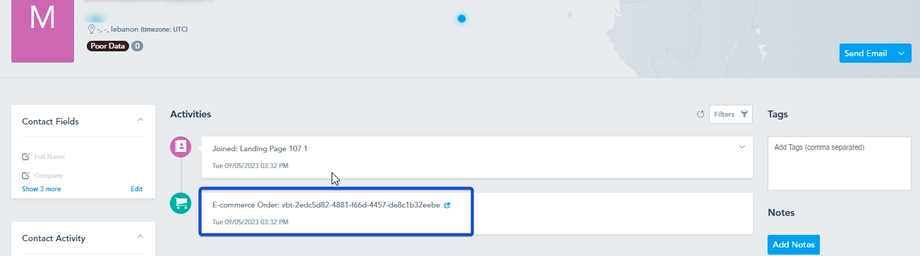 - Once a contact completes a payment form, the payment will show in the lead profile as a completed order.