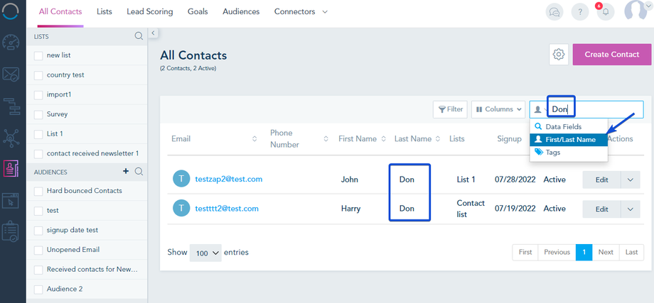 In case you choose the First/Last name option, type in the name you want to search for, then all contacts matching this name will be displayed.