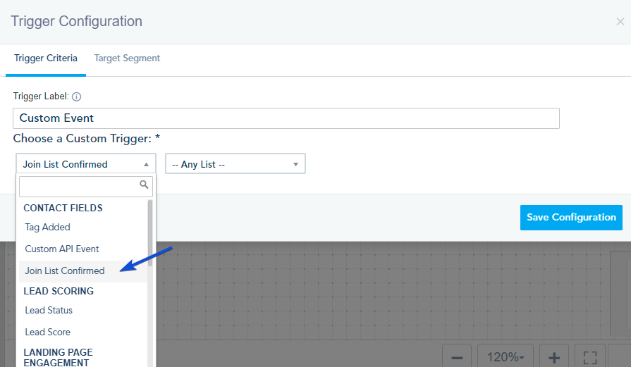 In your trigger configuration, choose the Join List Confirmed trigger and the list you want to check for confirmation.