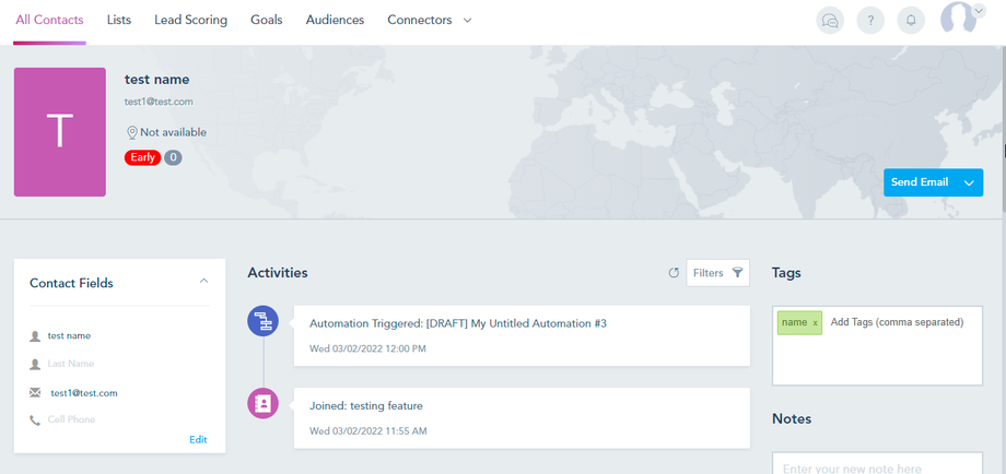 To preview the timeline of a contact, click on their email address. You will be able to view the Contact history of engagement and additional contact details such as Lead Scoring, Geo-location, Referral Source, Subsequent Referral source for each engagement and much more.