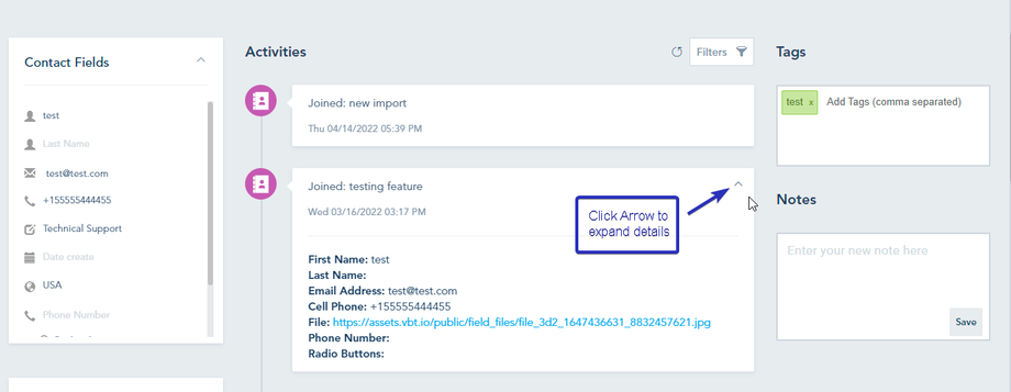 You can filter by engagement type and expand the details to view the details of that engagement: