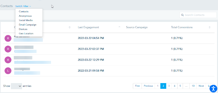 - The table below gives you a detailed breakdown of who are the Contacts that reached your goal, the Anonymous IP’s and their full profile, which social media events and email campaigns triggered this goal, the demographics of the users as well as conversion by device type.