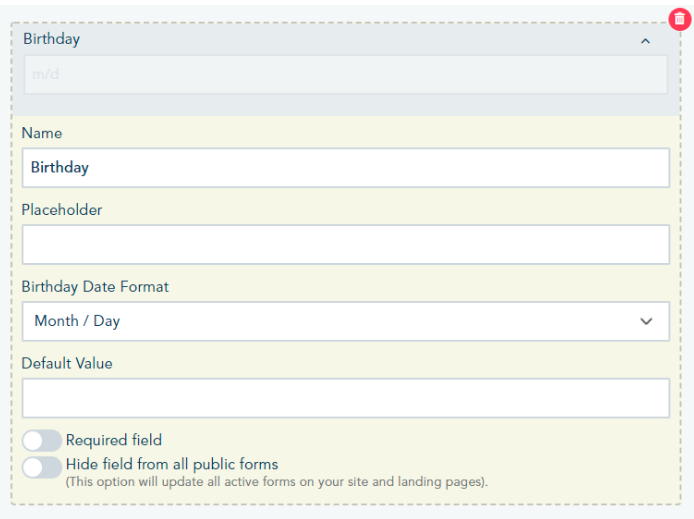 13. Birthday: This field can be used in order for the subscribers to add their birth date:
