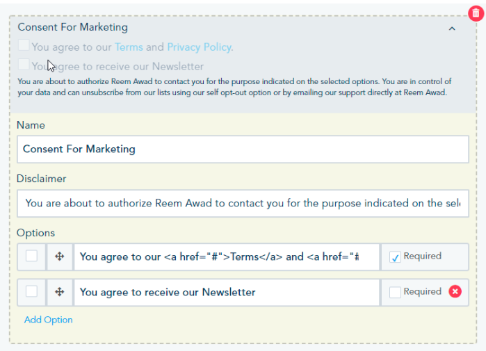 16. GDPR: This field is used to ask users to accept the Terms and Privacy Policy, you can add other conditions to it and set them as required or not:
