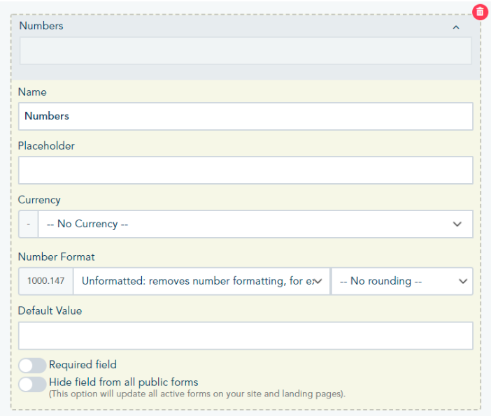 3. Number: In this field, you can ask the user to fill in a number or a currency.