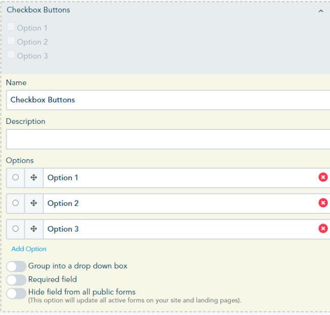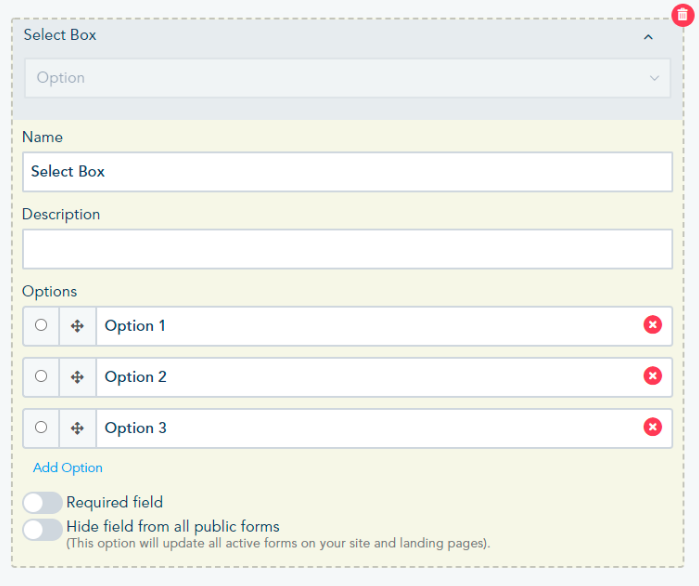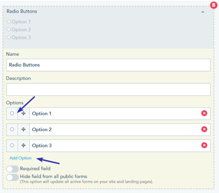 If you click on the radio, it becomes the default radio, you can add a new option once you click on Add Option