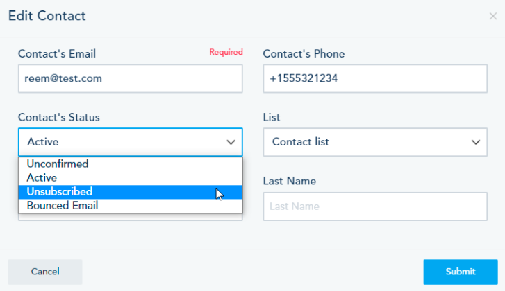 Then change the status to Unsubscribe:
