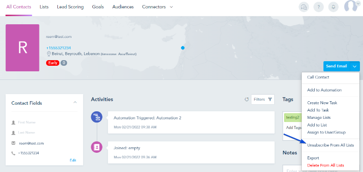 You can choose to Unsubscribe this contact from a specific list or from all lists.