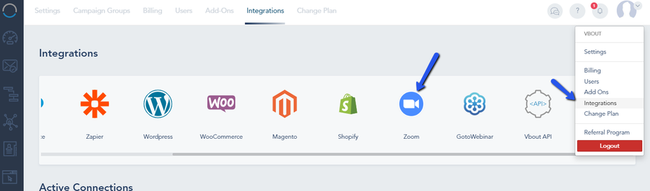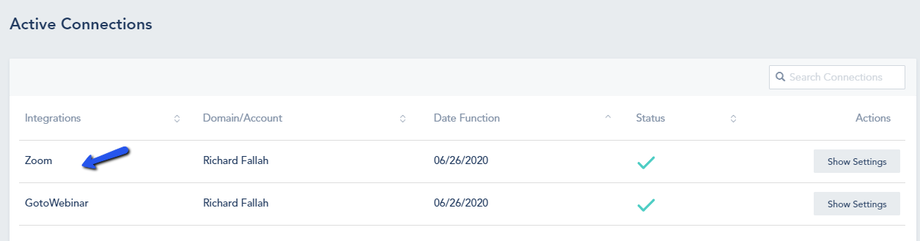 Once you successfully connect your Zoom account, you will see it under the Integrations page: