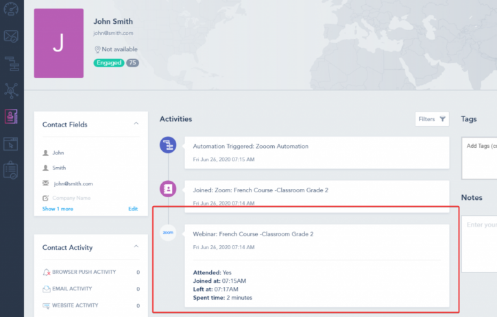 - Create automation campaigns based on Zoom webinar activities (ex: when a contact joins a a Zoom webinar, put them in a content drip, create a pipeline activity and send them to a custom audience on Facebook Ads).