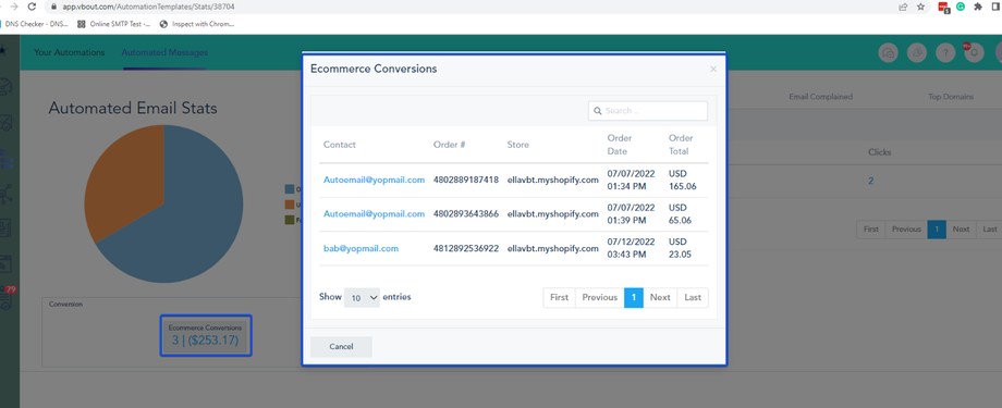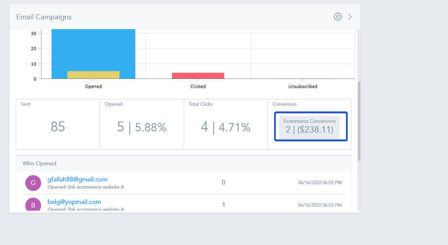 Also, you can see the e-commerce conversion for your email campaign, in the Email Campaigns widget on your dashboard