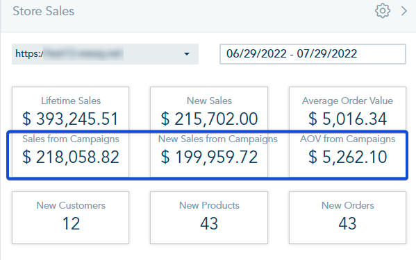 In the Stores Sales widget, you can check the Sales and Average Order Value converted from your Campaigns.