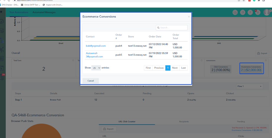 The platform automatically tracks conversions for any campaigns and automated messages (Email, SMS, and Browser Push) sent to your contacts. This allows you to analyze the performance of your marketing channels across your account.