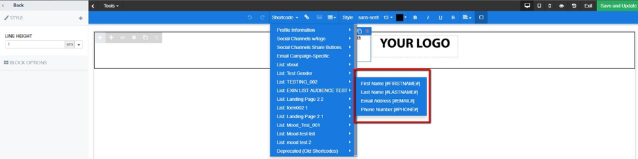 - When targeting multiple lists, you might need to include multiple Shortcodes in the same line. ex: Hello [COMPANY] [COMPANYNAME]. In this example each Shortcode is a reference to a custom field called company that you might have created for each list.