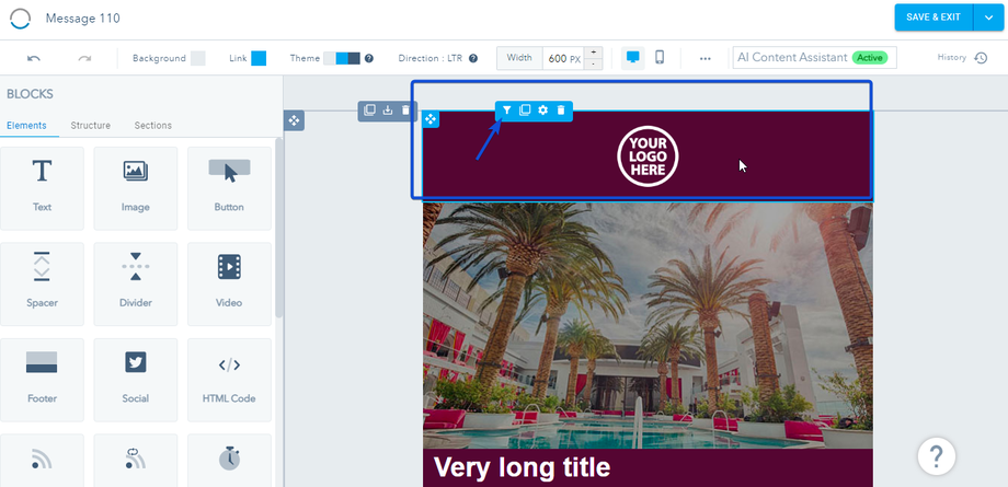 Go to your email template, from the menu on top of the block, and click on the filter icon.
