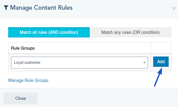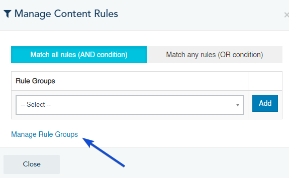 Close the Manage Rule Groups window to return to the Manage Content Rules window.