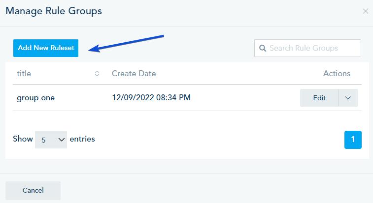 Next, click on Add New Ruleset to create a new rule or Edit to update an existing rule group.