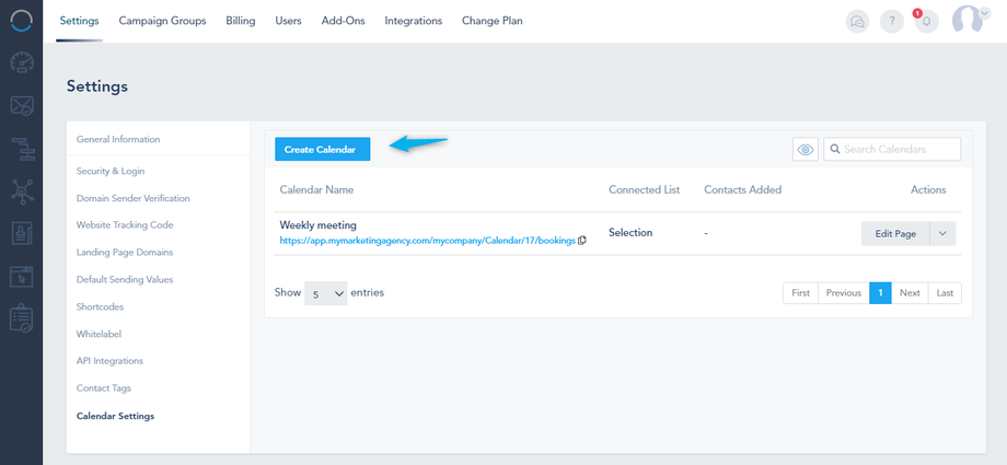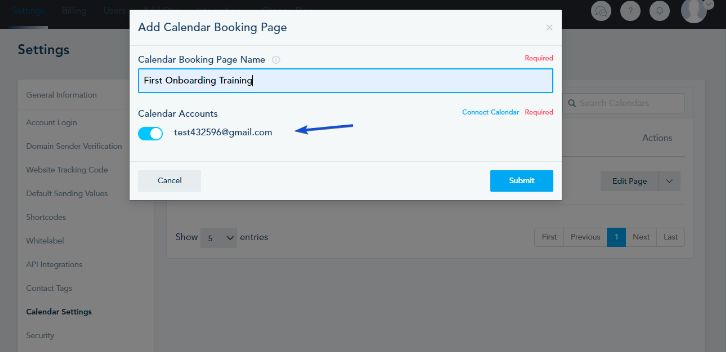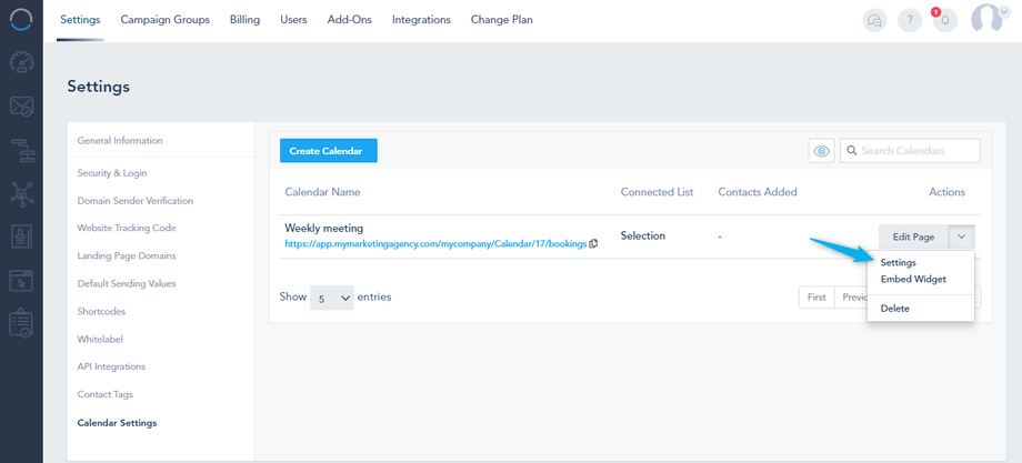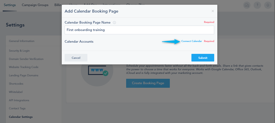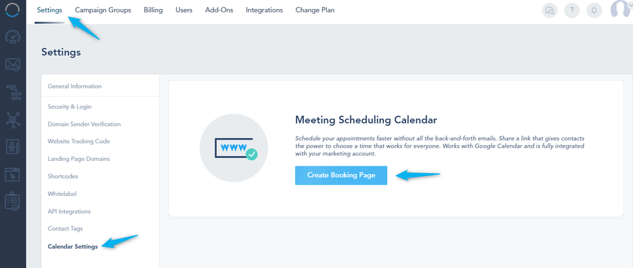 The second option is to go to Settings, Calendar Settings, Create Booking Page: