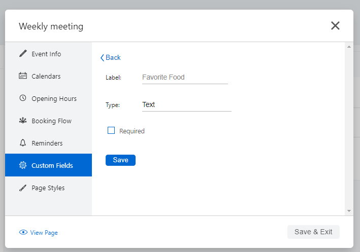 If you choose to add a new field, label it, choose its type and if you want it as required or not: