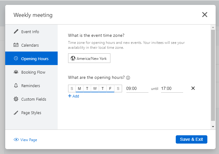 Opening hours: Choose the event’s time zone along with the opening hours: