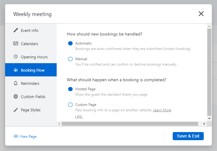Booking Flow: Choose how the new bookings should be handled and what happens after a booking is completed: