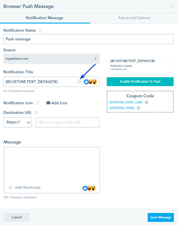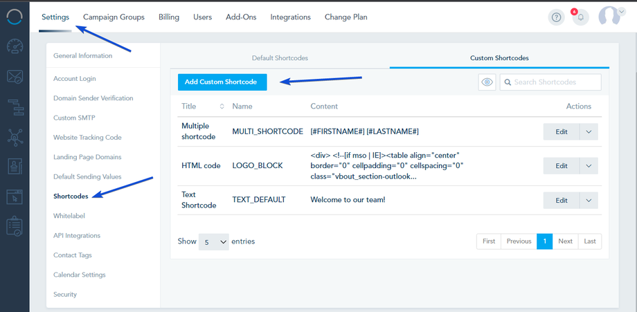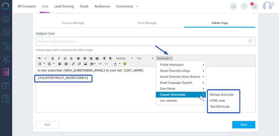 Once created, you can use the custom Shortcodes in your landing page, email, SMS, Browser Push message, and list settings.