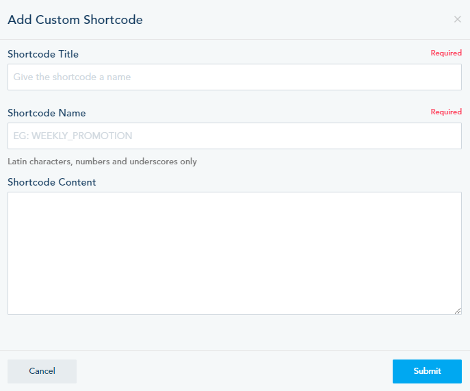 One example use is changing a company tag line on several landing pages and email headers. With Custom Shortcodes you only need to change the content once.