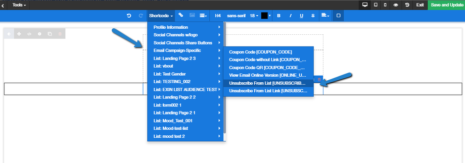 Here’s how you can add an Unsubscribe link using shortcodes: